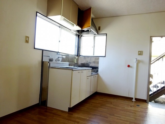 南向きバルコニー (間取)敷地内駐車場有 (外観)洋室6帖 (内装)DK (内装)キッチン、窓があり換気に最適です。 (内装)洋室 (内装)クローゼット収納バスルーム (風呂)トイレバルコニー専用物置サニーハイツ 画像13