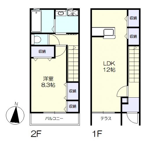 メゾネットタイプの1LDK。